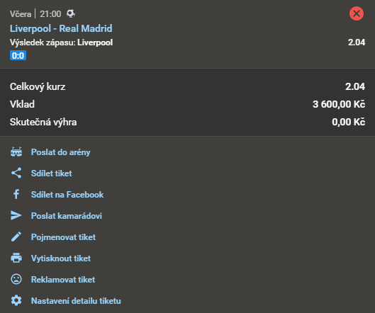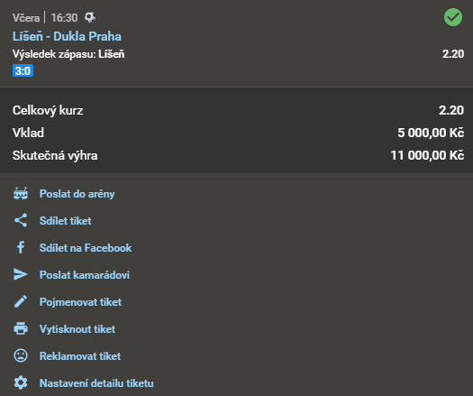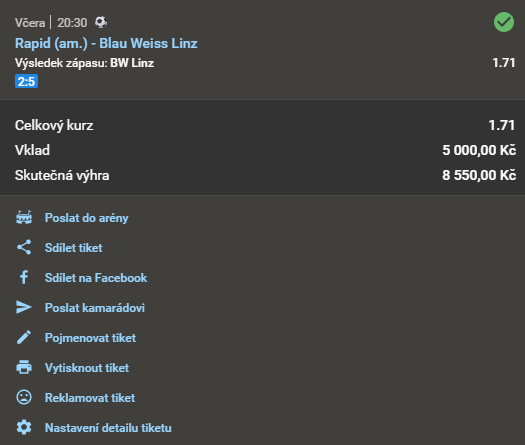 Název doporučeného tipu Kurz Datum a čas Náš tip Analýza Výsledek Fotografie tiketu Při sázce
