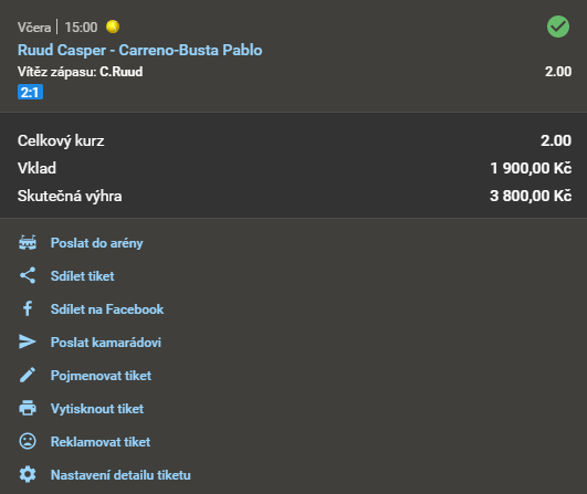 Tenis, Ruud - Carreno-Busta 2.03 15. 4. 2021 15:30 Ruud Zobrazit OK Zobrazit + 2 030 Kč