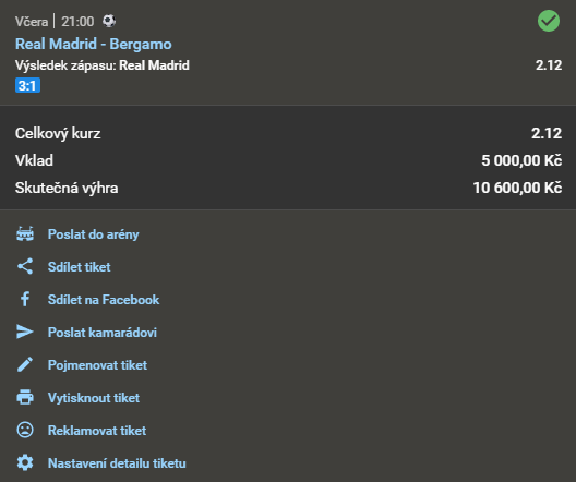 Název doporučeného tipu Kurz Datum a čas Náš tip Analýza Výsledek Fotografie tiketu Při sázce