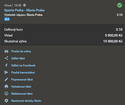 Název doporučeného tipu Kurz Datum a čas Náš tip Analýza Výsledek Fotografie tiketu Při sázce