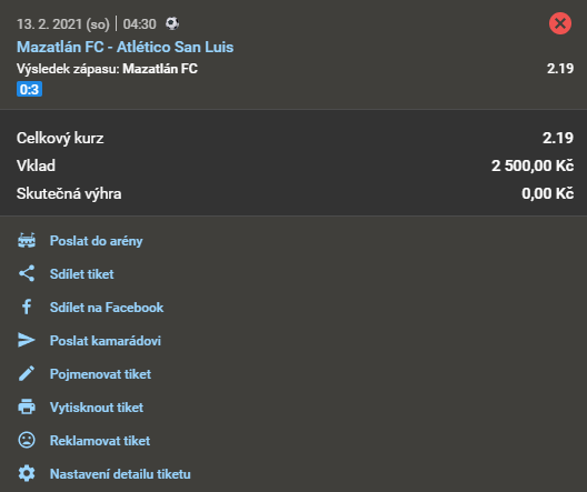 Název doporučeného tipu Kurz Datum a čas Náš tip Analýza Výsledek Fotografie tiketu Při sázce