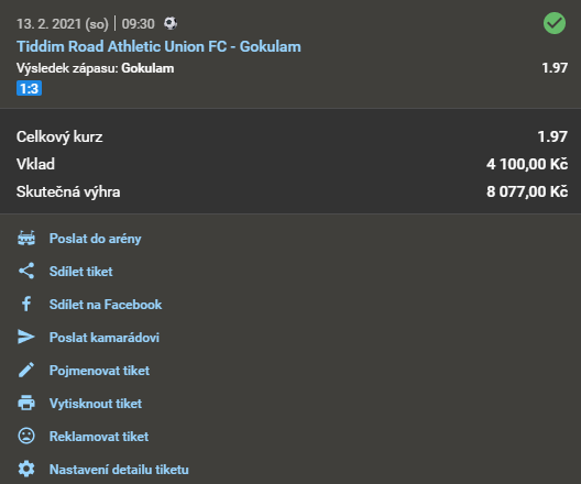 DOPOLEDNÍ SUPERTIP! = SKVĚLÝ POMĚR CENA / DŮVĚRA (97.3%)! = ZLATÁ STŘEDNÍ CESTA! ! = DOPORUČUJEME PRO KAŽDÉHO!! 2.12 13. 2. 2021 11:30 Punjab FC - Chennai City TIP: 1 Zobrazit OK Zobrazit + 2 120 Kč