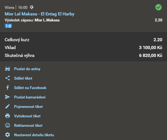 Název doporučeného tipu Kurz Datum a čas Náš tip Analýza Výsledek Fotografie tiketu Při sázce