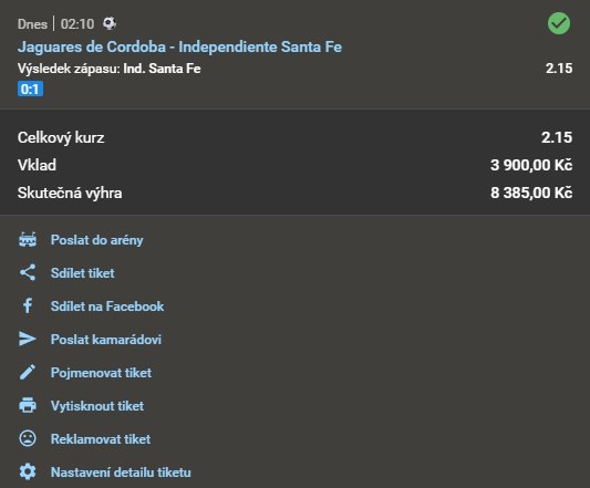 Název doporučeného tipu Kurz Datum a čas Náš tip Analýza Výsledek Fotografie tiketu Při sázce