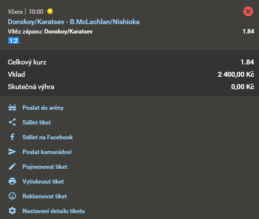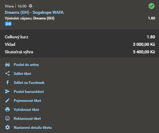 Název doporučeného tipu Kurz Datum a čas Náš tip Analýza Výsledek Fotografie tiketu Při sázce