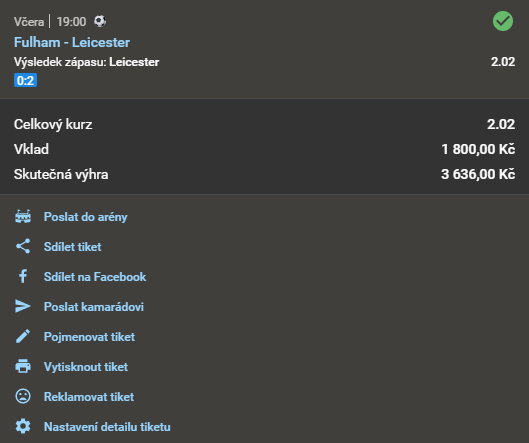 Fotbal, Fulham - Leicester 1.98 3. 2. 2021 19:00 Hosté Zobrazit OK Zobrazit + 1 980 Kč