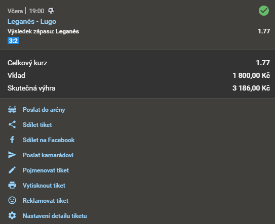 Fotbal, Leganes - Lugo 1.82 1. 2. 2021 19:00 Domácí Zobrazit OK Zobrazit + 1 820 Kč