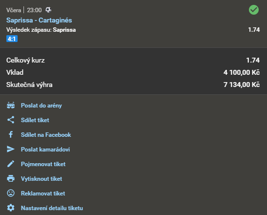Název doporučeného tipu Kurz Datum a čas Náš tip Analýza Výsledek Fotografie tiketu Při sázce