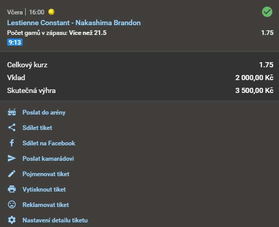 Tenis, Lestienne - Nakashima 1.75 29. 1. 2021 16:00 Počet gamů v zápasu: Více než 21,5 Zobrazit OK Zobrazit + 1 750 Kč