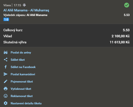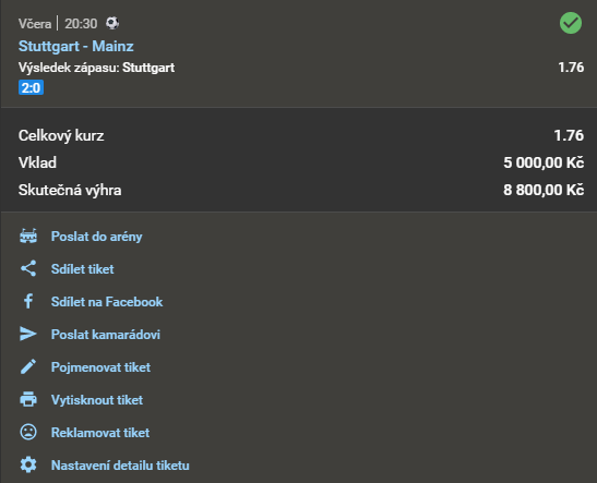 Název doporučeného tipu Kurz Datum a čas Náš tip Analýza Výsledek Fotografie tiketu Při sázce