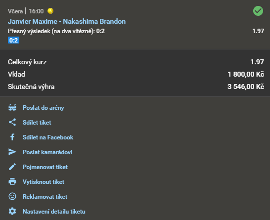 Tenis, Janvier - Nakashima 1.90 26. 1. 2021 16:00 Přesný výsledek (na dva vítězné): 0:2 Zobrazit OK Zobrazit + 1 900 Kč