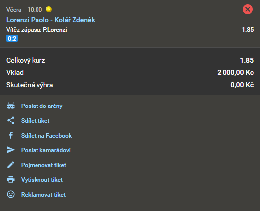 Název doporučeného tipu Kurz Datum a čas Náš tip Analýza Výsledek Fotografie tiketu Při sázce