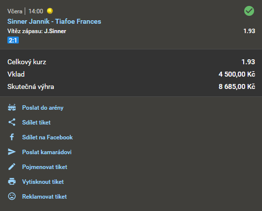 Název doporučeného tipu Kurz Datum a čas Náš tip Analýza Výsledek Fotografie tiketu Při sázce