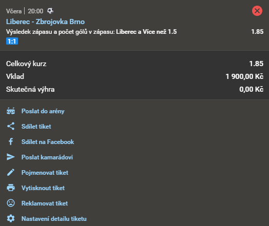Název doporučeného tipu Kurz Datum a čas Náš tip Analýza Výsledek Fotografie tiketu Při sázce