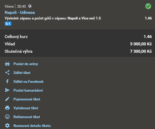 Název doporučeného tipu Kurz Datum a čas Náš tip Analýza Výsledek Fotografie tiketu Při sázce