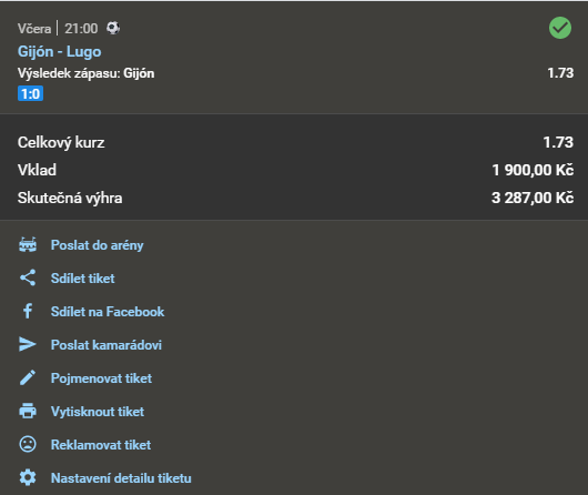 Fotbal, Gijon - Lugo 1.85 10. 5. 2021 21:00 Domácí Zobrazit OK Zobrazit + 1 850 Kč