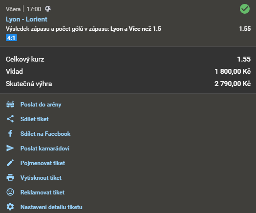 Fotbal, Lyon - Lorient 1.70 8. 5. 2021 17:00 Domácí a více než 1,5 gólu Zobrazit OK Zobrazit + 1 700 Kč