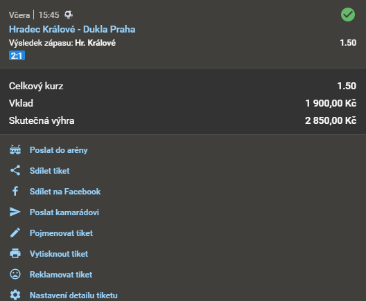 Název doporučeného tipu Kurz Datum a čas Náš tip Analýza Výsledek Fotografie tiketu Při sázce