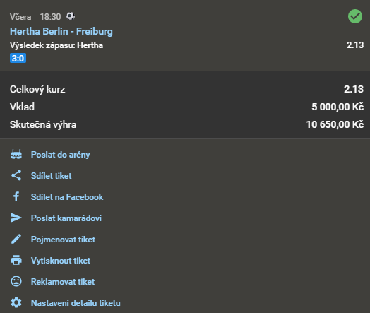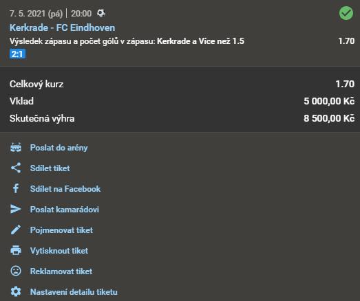Název doporučeného tipu Kurz Datum a čas Náš tip Analýza Výsledek Fotografie tiketu Při sázce