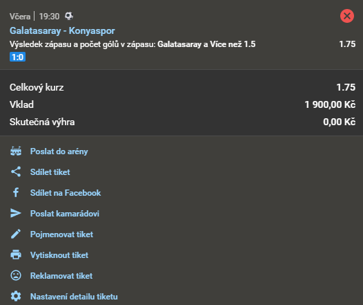 Fotbal, Galatasaray - Konyaspor 1.85 28. 4. 2021 00:55 Domácí a více než 1,5 gólu Zobrazit KO Zobrazit 0 Kč