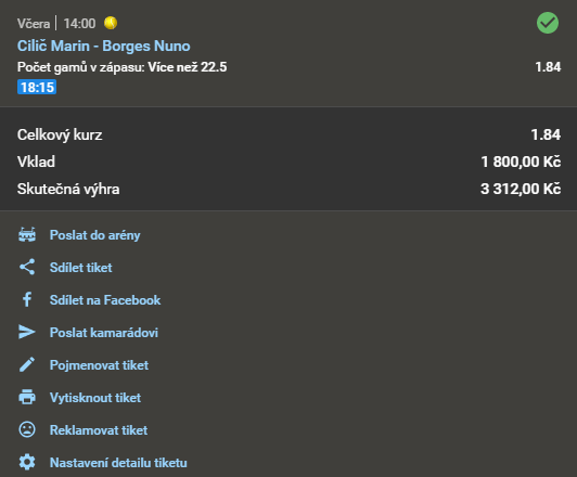 Tenis, Cilič - Borges 1.82 28. 4. 2021 14:00 Počet gamů v zápasu: Více než 22,5 Zobrazit OK Zobrazit + 1 820 Kč
