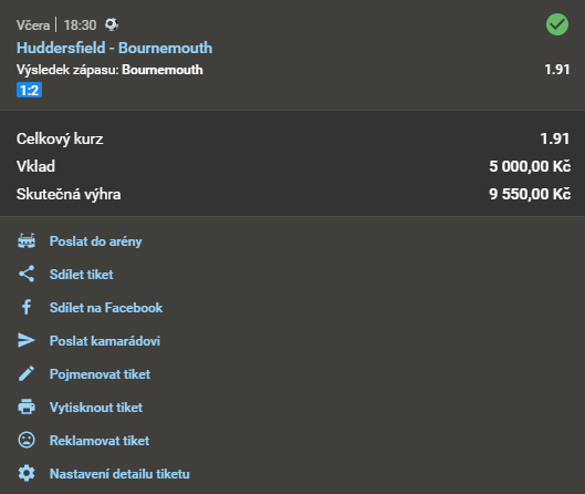 Název doporučeného tipu Kurz Datum a čas Náš tip Analýza Výsledek Fotografie tiketu Při sázce
