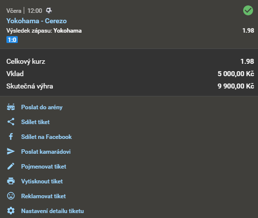 Název doporučeného tipu Kurz Datum a čas Náš tip Analýza Výsledek Fotografie tiketu Při sázce