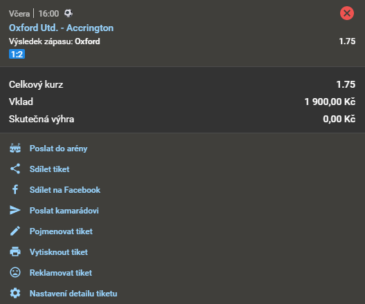 Fotbal, Oxford - Accrington 1.70 5. 4. 2021 16:00 Domácí Zobrazit KO Zobrazit 0 Kč