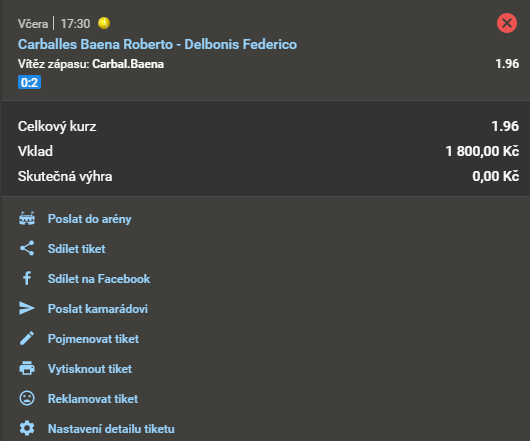 Tenis, Carballes Baena - Delbonis 2.07 5. 4. 2021 17:30 Carballes Baena Zobrazit KO Zobrazit 0 Kč