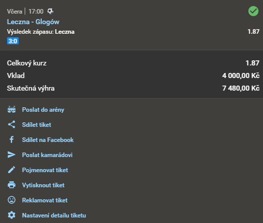 Název doporučeného tipu Kurz Datum a čas Náš tip Analýza Výsledek Fotografie tiketu Při sázce