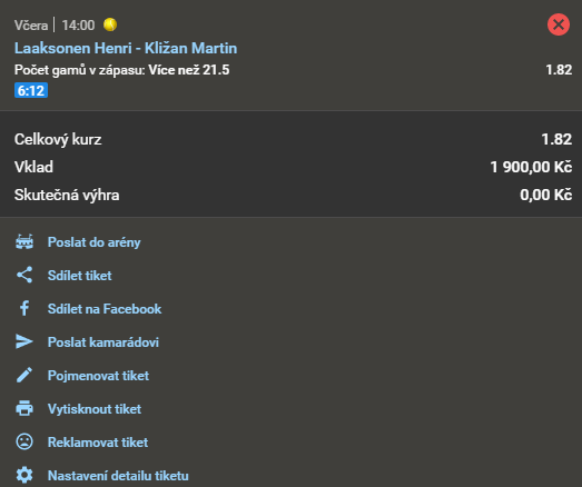 Tenis, Laaksonen - Kližan 1.79 31. 3. 2021 15:00 Počet gamů v zápasu: Více než 21,5 Zobrazit KO Zobrazit 0 Kč