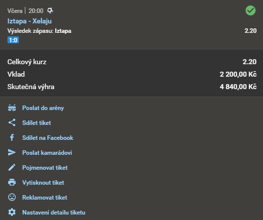 Název doporučeného tipu Kurz Datum a čas Náš tip Analýza Výsledek Fotografie tiketu Při sázce