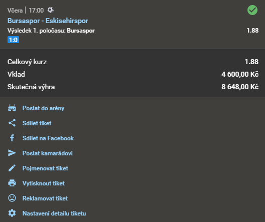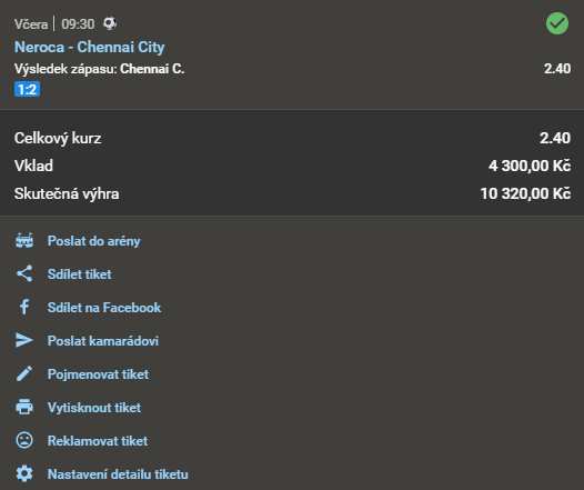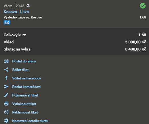 Název doporučeného tipu Kurz Datum a čas Náš tip Analýza Výsledek Fotografie tiketu Při sázce