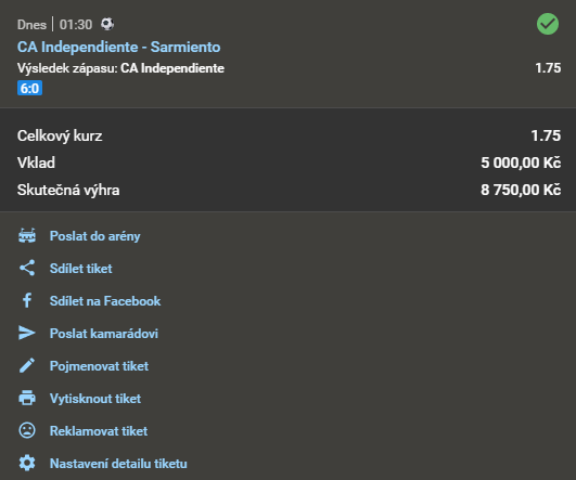 Název doporučeného tipu Kurz Datum a čas Náš tip Analýza Výsledek Fotografie tiketu Při sázce