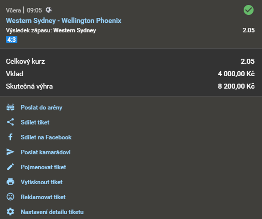 RANNÍ NAPROSTO EXKLUZIVNÍ MEGA TUTOVKA! = DLE NAŠEHO NÁZORU ABSOLUTNÍ POVINNOST VSADIT! = EXTRÉMNĚ DOPORUČUJEME! => DŮVĚRA 98.4%! 2.05 15. 3. 2021 09:05 Western Sydney - Wellington Phoenix TIP: 1 Zobrazit OK Zobrazit + 2 050 Kč