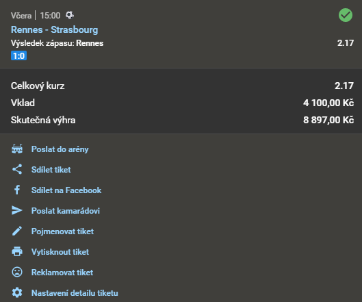 Název doporučeného tipu Kurz Datum a čas Náš tip Analýza Výsledek Fotografie tiketu Při sázce