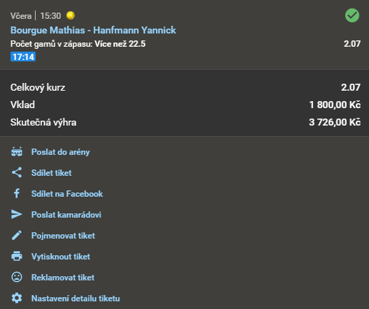Tenis, Bourgue - Hanfmann 1.84 15. 3. 2021 16:30 Počet gamů v zápasu: Více než 22,5 Zobrazit OK Zobrazit + 1 840 Kč