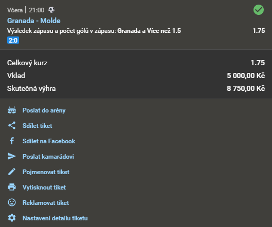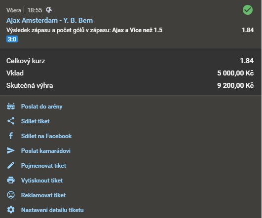 Název doporučeného tipu Kurz Datum a čas Náš tip Analýza Výsledek Fotografie tiketu Při sázce