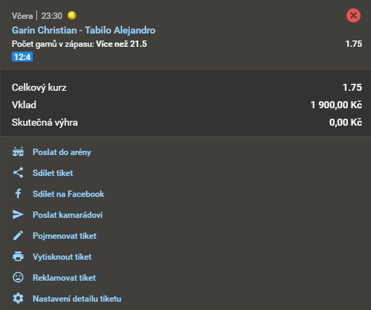 Tenis, Garin - Tabilo 1.77 11. 3. 2021 23:30 Počet gamů v zápasu: Více než 21,5 Zobrazit KO Zobrazit 0 Kč