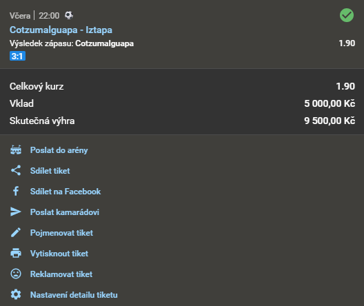 Název doporučeného tipu Kurz Datum a čas Náš tip Analýza Výsledek Fotografie tiketu Při sázce