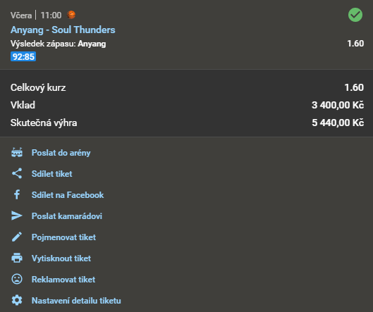 DOPOLEDNÍ SUPERTIP! = SKVĚLÝ POMĚR CENA / DŮVĚRA (97.3%)! = ZLATÁ STŘEDNÍ CESTA! ! = DOPORUČUJEME PRO KAŽDÉHO!! 1.61 11. 3. 2021 11:00 Anyang - Soul Thunders TIP: 1 Zobrazit OK Zobrazit + 1 610 Kč