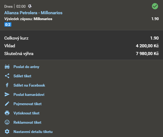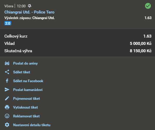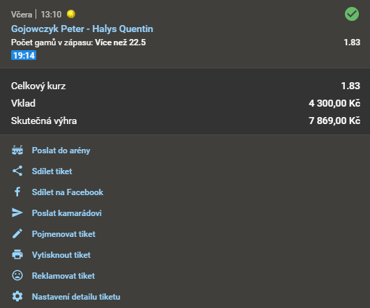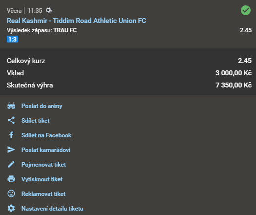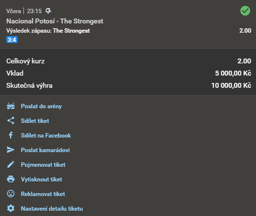 Název doporučeného tipu Kurz Datum a čas Náš tip Analýza Výsledek Fotografie tiketu Při sázce