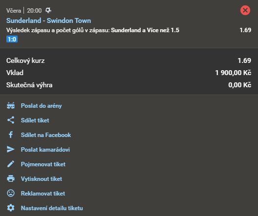 Fotbal, Sunderland - Swindon 1.70 2. 3. 2021 20:00 Domácí a více než 1,5 gólu Zobrazit KO Zobrazit 0 Kč