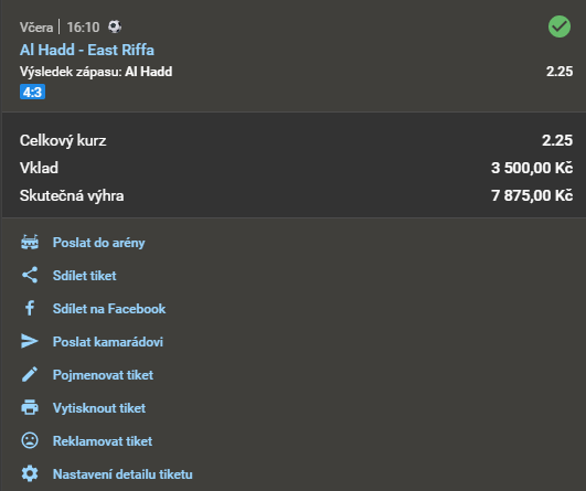 (Fotbal) Al Hadd - East Riffa = VELICE ZAJÍMAVÝ SUPERTIP S DŮVĚROU 97.2%! = DOPORUČUJEME! 2.25 3. 3. 2021 16:10 1 Zobrazit OK Zobrazit + 2 250 Kč