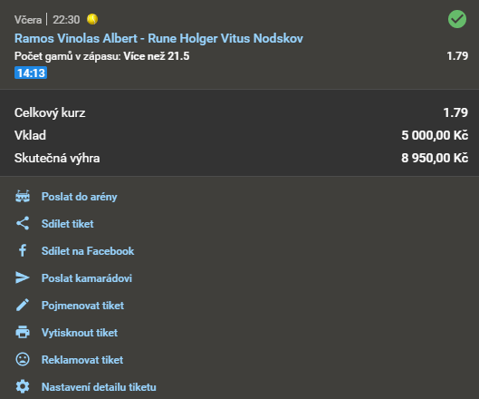 NAPROSTO EXKLUZIVNÍ PREMIUM EXCLUSIVE TIP S EXTRÉMNĚ VYSOKOU DŮVĚROU (99.3%) A VELMI DŮRAZNÝM DOPORUČENÍM! = IDEÁLNĚ DOPORUČUJEME VSADIT ZA ZVÝŠENÝ VKLAD! = MEGA DOPORUČUJEME!! 1.80 2. 3. 2021 20:30 Tenis, Ramos Vinolas - Rune TIP: Počet gamů v zápasu: Více než 21,5 Zobrazit OK Zobrazit + 1 800 Kč