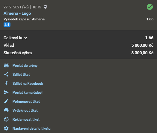 Název doporučeného tipu Kurz Datum a čas Náš tip Analýza Výsledek Fotografie tiketu Při sázce