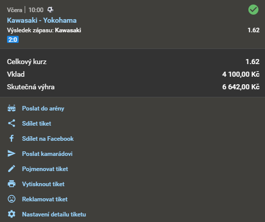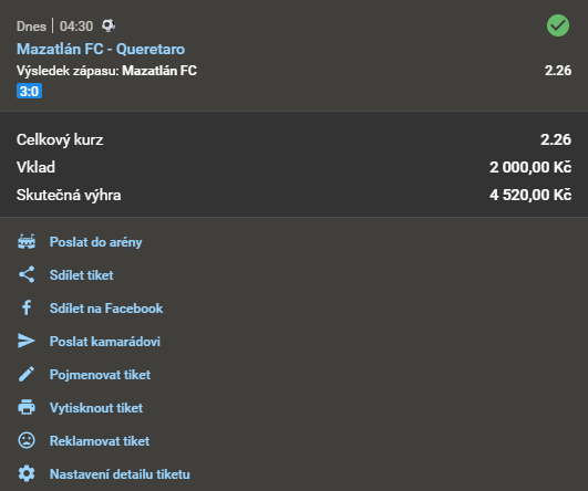 Název doporučeného tipu Kurz Datum a čas Náš tip Analýza Výsledek Fotografie tiketu Při sázce