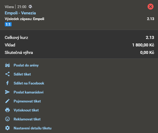Fotbal, Empoli - Venezie 2.13 26. 2. 2021 21:00 Domácí Zobrazit KO Zobrazit 0 Kč